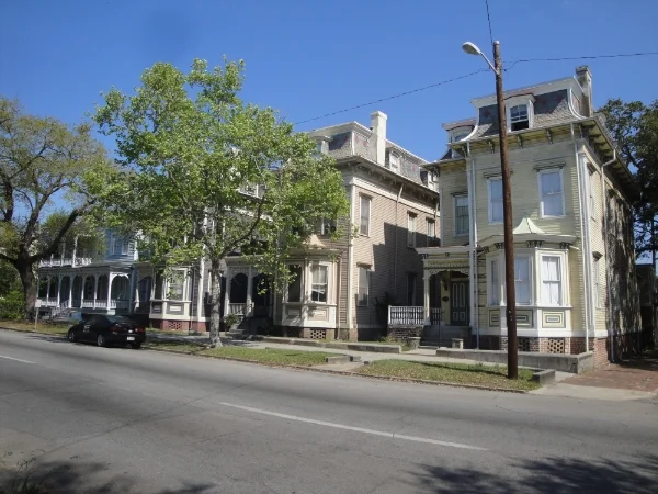 Here are three houses in the Victorian District. All three are identical, with only some variety in color. For many design guidelines, this would not be allowed: