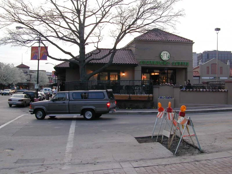 Another Midtown example, on a smaller scale, exists in the Volker neighborhood near 39th Street and Bell. This neighborhood center is a main-street style strip of shops along 39th Street, supported by the residences around it, as well as KU Med Center. An unfortunate suburban-style building at Bell Street actually reveals an opportunity for this neighborhood. The parking lot on the corner has a small number of spaces dedicated to the strip mall that sits behind it. Now again use your imagination, and picture this as a public square, with a new, larger building behind it. The space would instantly create far more value, and provide some much-needed space for people to just sit and enjoy the neighborhood. As a major destination for foodies in the area, just imagine the ability to sit outdoors here in an attractive space and eat. The cost: about 16 parking spaces (plus 6 for the building next door), some landscaping and sweat. The long-term benefit: immeasurable.