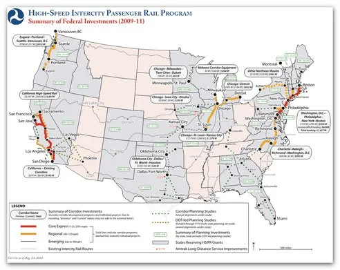 Fast forward five years since that 2009 pledge, and many of the most hopeful transformations have yet to arrive. A proposed national network of high-speed rail is little more than a wishful map. The Highway Trust Fund, which pays for road maintenance as well as transit programs, will run out of money any month. Streetcars with questionable mobility value represent perhaps the most visible addition to city transport systems. There have been some minor victories — transit use is up in places, and bike systems are robust in others — but many more defeats.