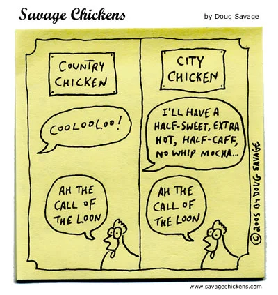 It's even worse with public perception and the media. Since journalists tend to simplify every argument into an "us" versus "them" mentality, we get the reductionist city person or country person phenomenon. Occasionally (if we're lucky) that broadens to city or suburb or country.
